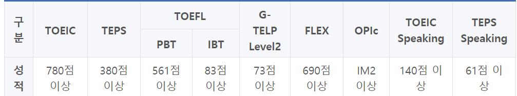 <카투사 지원자격 - 영어 어학성적>