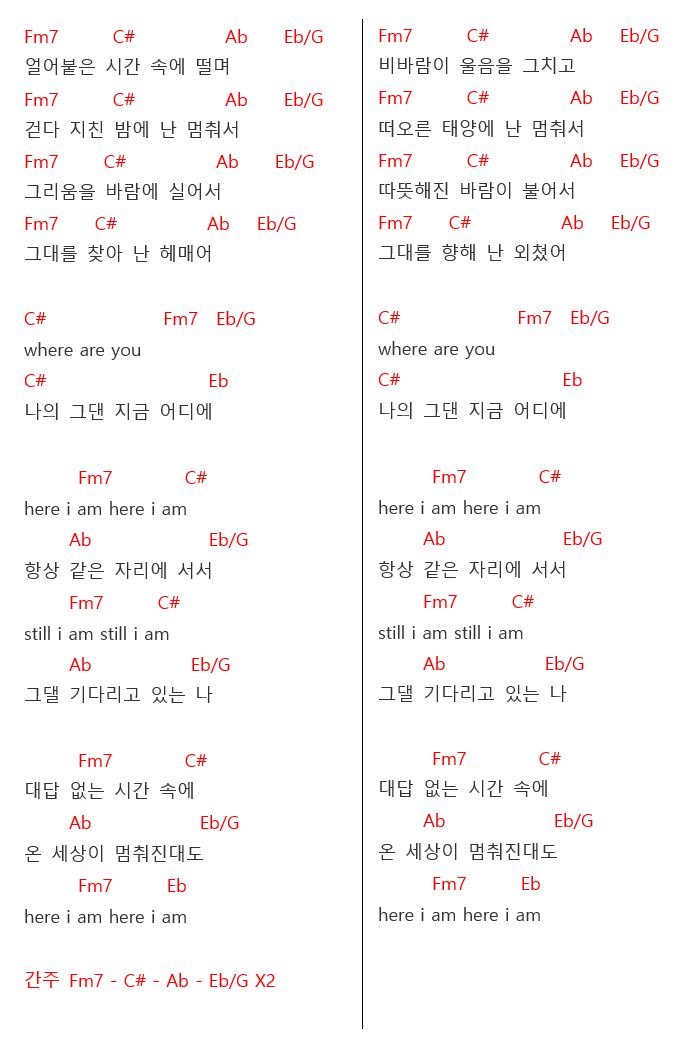 <조현아 - 'Here I am' 코드>