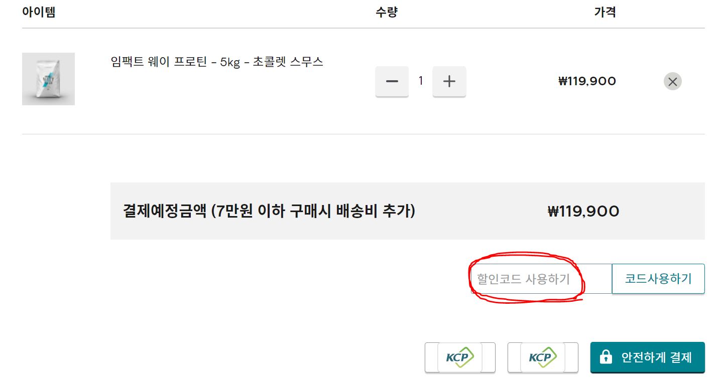 마이프로틴에서 할인 코드를 입력하고 할인받는 법은 다음과 같아요. (마이프로틴 아이솔레이트이던 마이프로틴 bcaa이든 간에 상관없이 어떤 상품에서도 동일하게 적용할 수 있습니다.)
