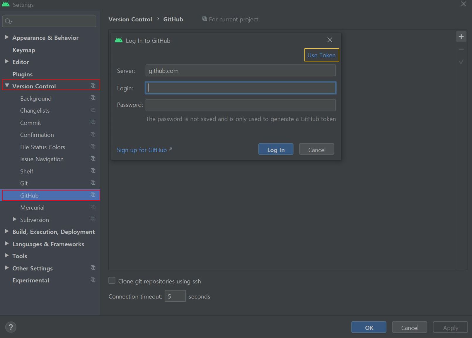 Use Token으로 안드로이드 스튜디오에 깃허브 계정 로그인하는 방법